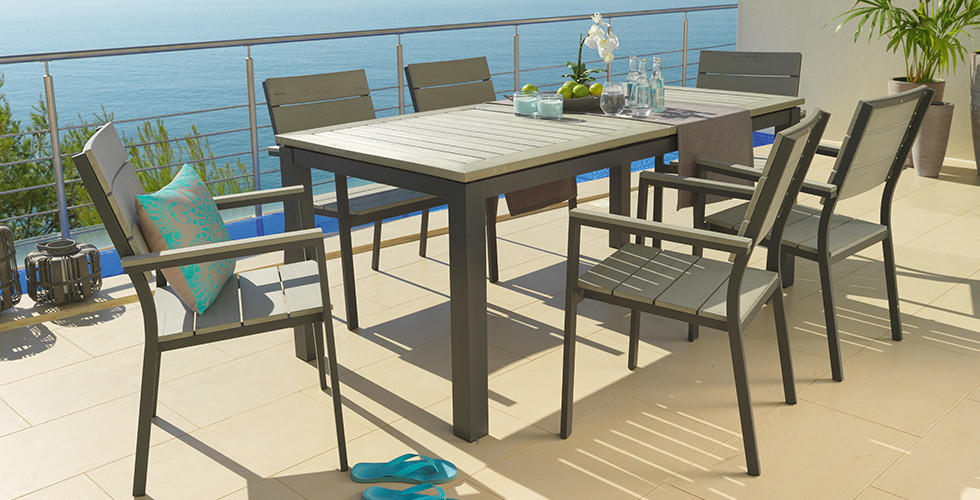 Gartentisch Polywood Aluminium Grau 150cm Alu Tisch Holz